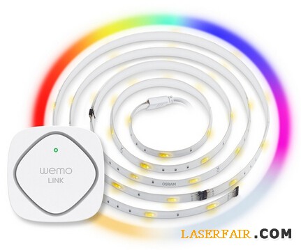 其次是售價119.99美元的Flex RGBW燈帶入門套裝,包括三條2英尺長的LED燈帶、WeMo link網(wǎng)關(guān)、電源以及LIGHTIFY控制器。這款燈帶背面自帶粘膠,安裝方便,顏色可調(diào),色溫范圍為2700到6500K,是理想的裝飾照明產(chǎn)品。
