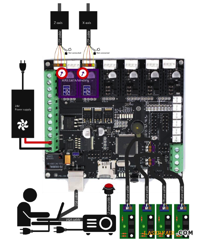 在機器的控制系統(tǒng)方面,Holtrop采用一塊Megatronics V3主板并加載Marlin固件來控制整個機器。投影機方面,他選擇的是明基PB7230 DLP投影儀,其XGA分辨率為1024×768,不過由于需要在比較短的距離上投射小圖像,他在DMD芯片和透鏡組之間加裝了一個5毫米的間隔裝置。