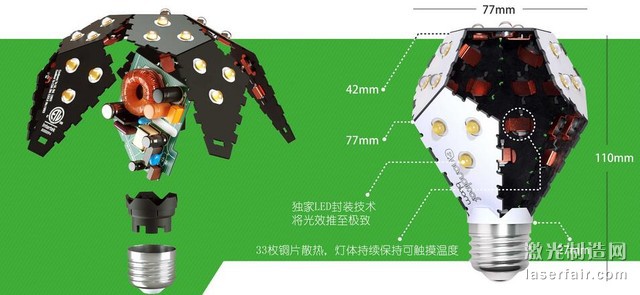 從外型上來(lái)看,這款綠諾LED燈泡的設(shè)計(jì)獨(dú)特,顛覆了傳統(tǒng)燈泡的外觀設(shè)計(jì),有著較強(qiáng)的視覺(jué)沖擊力。該產(chǎn)品由11面印刷電路板拼合而成,總共有33LED燈珠,可以為家庭及商業(yè)用戶提供360度的照明體驗(yàn)。