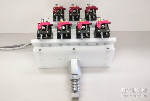 有的時候,最簡單的解決方案反而是最好的。在開發(fā)能夠打印多種顏色和材料對象的3D打印技術(shù)時,很多人經(jīng)常會把多個打印頭綁在一起形成一個難以管理的大打印頭。而對于那些需要在有限的空間里進行3D打印作業(yè)的人來說,這種多重3D打印頭可能是個問題。如今,為了解決這個問題,有一個增材制造工程師團隊開發(fā)出了一個創(chuàng)新的多線材3D打印頭。近日,該團隊帶著這款產(chǎn)品登上了Kickstarter,希望通過眾籌募集資金將他們的產(chǎn)品投入生產(chǎn)。