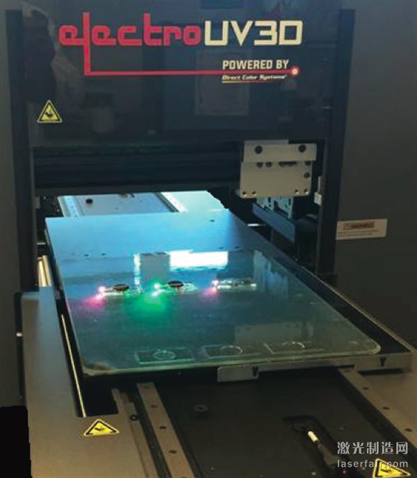 Direct Color Systems生產他們的Direct Jet UV LED系列打印機已經有些年頭了。據了解,ElectroUV3D上面也集成了該公司之前產品的一些關鍵功能。出了這些成熟的功能之外,ElectroUV3D上的新功能包括兼容ChemCubed的可噴射液體、多層打印工藝和電子元器件打印等。