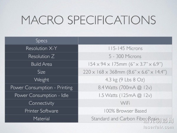 世界首款支持碳纖維的光固化3D打印機Macro