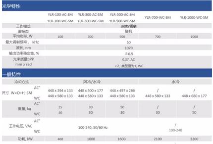 注:實(shí)際上YLR系列具有從100 W,200 W,300 W,400 W至1 kW的10個(gè)百瓦整數(shù)倍功率的激光器可供選擇