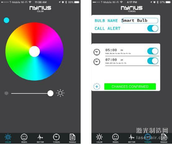 這款Nyrius燈泡就是其中相當(dāng)不錯(cuò)的一款,它可以通過(guò)iOSAndroid設(shè)備控制,并且可以調(diào)整各種顏色和亮度,甚至當(dāng)你的手機(jī)有來(lái)電的時(shí)候還能不停的閃爍進(jìn)行通知。