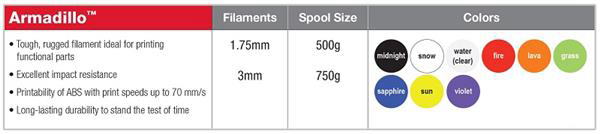 NinjaTek推出的第二款3D打印線材被稱為Armadillo,與Cheetah不同的是,這是一款剛性材料。