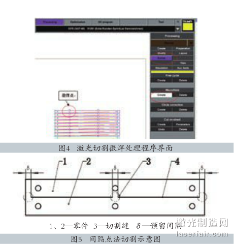 對(duì)于不銹鋼類(lèi)工件,由于外觀(guān)要求嚴(yán)格,微焊易引起焊接融痕且不易消除,影響零件的外觀(guān)質(zhì)量,現(xiàn)采用如圖5所示的間隔點(diǎn)法切割。進(jìn)入用戶(hù)界面(圖6),依次點(diǎn)擊“Create”→“Start”按鈕即可創(chuàng)建間隔點(diǎn)。