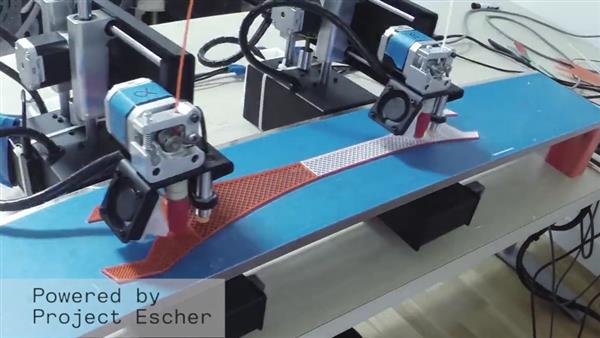 據(jù)了解,Escher項(xiàng)目本質(zhì)上就像一條流水線,在這里眾多3D打印頭通過軟件集成在一起,每個(gè)打印頭負(fù)責(zé)打印對(duì)象的一個(gè)部分,同時(shí)進(jìn)行打印作業(yè),從而能夠以更快的速度完成一個(gè)大型的3D對(duì)象。