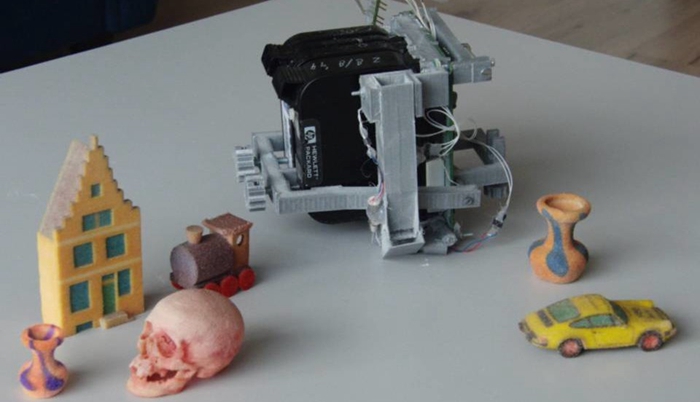據(jù)了解,Colorpod幾乎完全可3D打印的,可以安裝在幾款RepRap笛卡爾式3D打印機(jī)上。裝上之后,這些機(jī)器就可以使用粉末材料和彩色噴墨打印機(jī)的墨盒3D打印出全彩對象。這項技術(shù)實際上是上世紀(jì)90年代由Aad van der Geest開發(fā)用來替代當(dāng)時比較昂貴的光固化3D打印工藝的。多年來,van der Geest已經(jīng)對其進(jìn)行了多次改進(jìn),改善了它的性能,并且開發(fā)出一些專門的軟件來運行它。直到如今,他將這一切組合起來,創(chuàng)造了Colorpod。