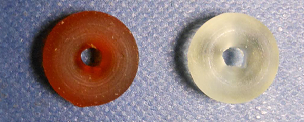 含有4-ASA(棕色)和對(duì)乙酰氨基酚(白色)的3D打印藥片