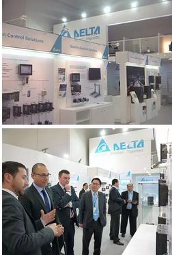 臺(tái)達(dá)在現(xiàn)場(chǎng)展示了完整的自動(dòng)化產(chǎn)品線和技術(shù)實(shí)力,通過對(duì)工廠整合控制平臺(tái)及云端系統(tǒng)的互動(dòng)展示,臺(tái)達(dá)提供遠(yuǎn)距制程控制的體驗(yàn)。新品部份,臺(tái)達(dá)推出新款的高階泛用型控制器、工業(yè)計(jì)算機(jī)、精巧型變頻器、高防護(hù)等級(jí)風(fēng)機(jī)水泵專用變頻器、六軸垂直關(guān)節(jié)機(jī)器人等,并建構(gòu)整合性工廠控制平臺(tái)、智慧機(jī)器人工作站、多水泵控制、包裝、電源治理、CNC控制等自動(dòng)化解決方案,以展現(xiàn)高階、智能的自動(dòng)化技術(shù);智慧機(jī)器人工作站的部分,臺(tái)達(dá)推出了最新的六軸垂直關(guān)節(jié)機(jī)器人和臂長(zhǎng)達(dá)600mm的SCARA機(jī)器人,并以動(dòng)態(tài)機(jī)臺(tái)進(jìn)行多角度插件、追蹤涂膠等加工模擬,在漢諾威現(xiàn)場(chǎng)展現(xiàn)高速、高精的控制、加工能力。