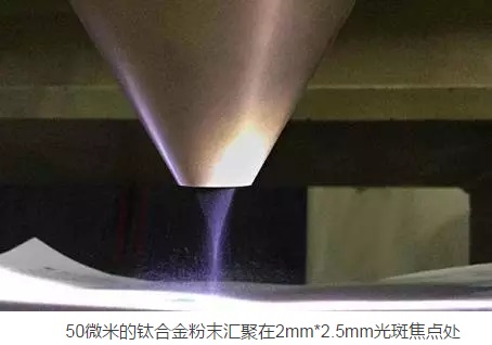 通過(guò)理論計(jì)算和實(shí)際驗(yàn)證,同軸送粉加類方形光斑半導(dǎo)體直接輸出實(shí)現(xiàn)了粉末在邊長(zhǎng)3~6mm類方形范圍內(nèi)均勻準(zhǔn)確的匯聚。不同粒徑和球形度的粉末經(jīng)過(guò)調(diào)節(jié)后,可以實(shí)現(xiàn)單次200~1000微米厚度的熔覆。