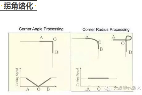當(dāng)減速切割薄鋼板的拐角時(shí),激光會(huì)因產(chǎn)生過熱而熔化拐角。在拐角處生成小半徑,以保持激光的高速切割,避免在切割拐角時(shí)出現(xiàn)鋼板過熱熔化現(xiàn)象,從而獲得良好的切割品質(zhì),并減少切割時(shí)間,提高生產(chǎn)力。