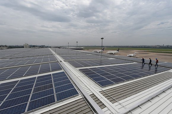 在今年6月21日,杭州蕭山國際機場貨站屋頂所安裝的2.3MW分布式太陽能發(fā)電系統(tǒng)正式落成投產(chǎn)。該系統(tǒng)估計每日可發(fā)電8,500度,且已并入國家電網(wǎng)。