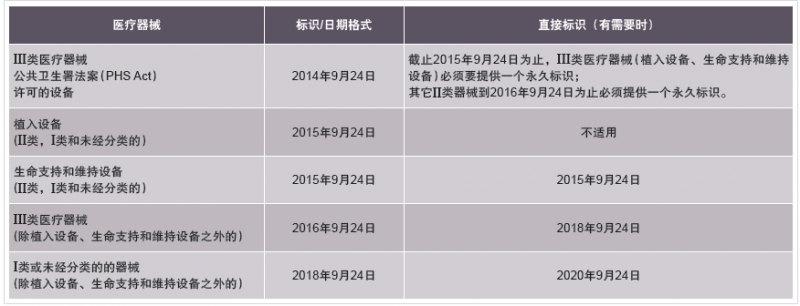 表1:在所有類別的醫(yī)療器械上提供永久性標(biāo)識的最后期限