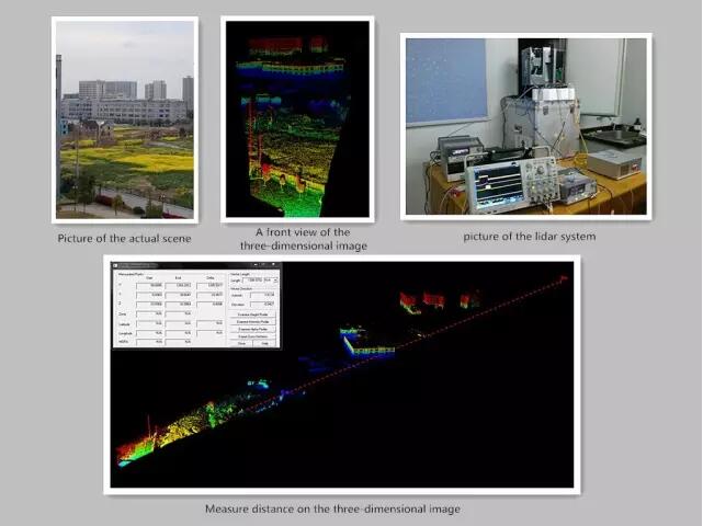 圖 基于高速偽隨機(jī)碼調(diào)制和單光子計(jì)數(shù)的三維成像激光雷系統(tǒng)及其成像效果圖。(該系統(tǒng)兼顧了低峰值功率發(fā)射和高成像速度兩方面,并成功獲得了1.2km范圍內(nèi)的目標(biāo)的高分辨率三維圖像。)