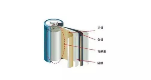 18650電池是典型的薄膜電池,由正極極片、隔離膜和負極極片間隔卷繞構(gòu)成,如下圖所示。