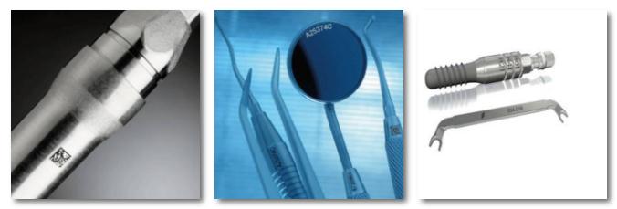 利用激光打標(biāo)機(jī)在不銹鋼外科手術(shù)和牙科設(shè)備等醫(yī)療器材上標(biāo)記,更易讀取,經(jīng)過無數(shù)次消毒和清洗的標(biāo)記照樣清晰可見,而且能有效防止細(xì)菌粘著在器材表面。