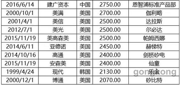從表6中可以看出,全球半導(dǎo)體產(chǎn)業(yè)20億美元收購(gòu)案中,前四大金額都出現(xiàn)在該時(shí)期,高通2016年10月宣布470億美元(一說(shuō)是390億美元,不管是哪個(gè)數(shù)字,都是第一大)收購(gòu)恩智浦,安華高科2015年5月370億美元收購(gòu)博通,軟銀320億美元收購(gòu)安謀,西部數(shù)據(jù)190億美元收購(gòu)閃迪。