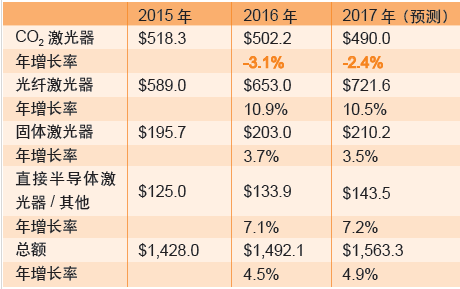 2016年工業(yè)激光器市場(chǎng)收入增長(zhǎng)依舊強(qiáng)勁
