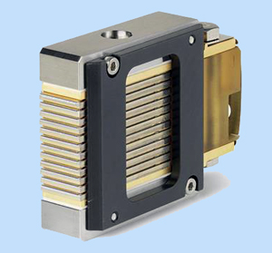 大功率半導體激光元件開發(fā)商II‐VI開發(fā)了強效冷卻激光棒,能夠以超過60%的效率提供多達275瓦的連續(xù)功率波。該激光棒能夠實現(xiàn)多千瓦垂直堆疊,能在包括低于零度的環(huán)境下將摻雜釹的固態(tài)激光器進行光學泵浦,在軍事防御中和工業(yè)加工中都可以應用。