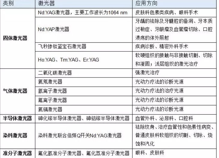 醫(yī)用激光器的種類及主要臨床應(yīng)用