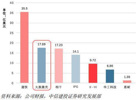 1999年成立的大族激光是“中國激光裝備行業(yè)的領(lǐng)軍企業(yè),世界知名的激光加工設(shè)備生產(chǎn)廠商”。就憑借這兩個(gè)“頂尖水平”的評(píng)價(jià),我們便可以對(duì)它的行業(yè)地位有一個(gè)基本的認(rèn)識(shí)。GPLP犀牛財(cái)經(jīng)從中信建投的研報(bào)中了解到,從2017年的數(shù)據(jù)來看,大族激光的激光設(shè)備銷售額在全球排名靠前。