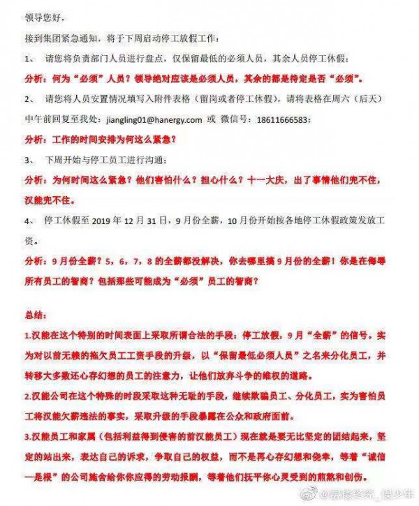 “漢能,沒有不可能。”這句漢能朗朗上口的司訓(xùn),已經(jīng)成為漢能被欠薪員工的揶揄對象。一名評論者在一篇關(guān)于漢能欠薪的網(wǎng)帖留言:“(不可能)有的,發(fā)工資是不可能的?!?
