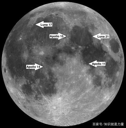 月面五臺激光反射器所處位置(圖片來源:NASA)