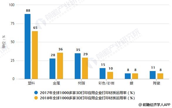 2017-2018年全球1000多家3D打印應(yīng)用企業(yè)打印材質(zhì)需求調(diào)研情況