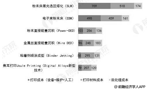 鈦粉末3D打印成本統(tǒng)計(jì)情況(單位:美元/KG)