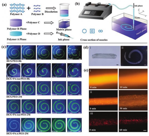 經(jīng)過實驗,該團隊指出:“配制的ATPS可以連續(xù)寫入全水性3D結(jié)構(gòu),并確保足夠的穩(wěn)定時間以防破裂直到形成界面膜。”