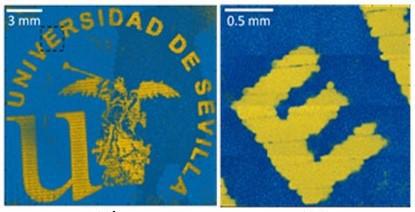 這類聚合物首次用于制備金納米顆粒。從三種不同的化學(xué)官能化聚合物獲得的這些納米顆粒被證明足夠?。ㄗ畲?0nm),可以在噴墨打印中進(jìn)行打印,并且至少可以穩(wěn)定六個(gè)月。一旦測(cè)試了每種油墨的可打印性,便選擇了性能最佳平衡的油墨,并將其用于打印我們大學(xué)的徽標(biāo)。在通過(guò)TOF-SIMS獲得的圖像中,可以在聚合物背景(藍(lán)色)上觀察到金(黃色)(形成徽標(biāo)的輪廓)(黃色)。這是通過(guò)3D打印技術(shù)獲得的具有可生物降解和生物相容性系統(tǒng)的金納米顆粒的第一張圖像。
