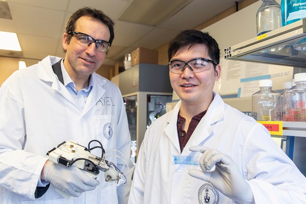 左起:Axel Guenther教授(MIE)和博士候選人Richard Cheng(IBBME)。