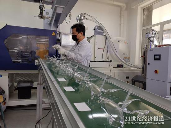2月25日,北京化工大學(xué)教授楊衛(wèi)民告訴21世紀(jì)經(jīng)濟(jì)報(bào)道記者,針對(duì)疫情特殊狀況,基于前期研究試驗(yàn),具有微納濾膜清新空氣微正壓輸入與呼出氣體在線消毒排放功能的“新風(fēng)正氣”新冠病毒防護(hù)面罩研制已經(jīng)取得初步成功,并有望批量化生產(chǎn)。