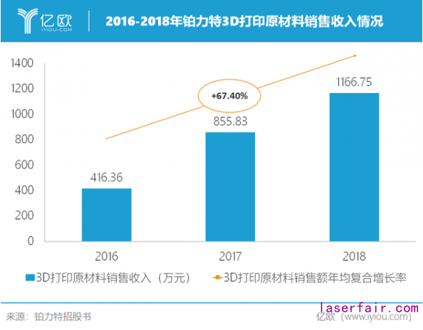 鉑力特組建獨立的粉末研發(fā)生產(chǎn)線,現(xiàn)已成功研制出TA1、TA15、TC4、TC4ELI等多個牌號的鈦合金粉末,具有質(zhì)量穩(wěn)定、球形度高、雜質(zhì)含量低、粒度分布均勻等優(yōu)點,現(xiàn)已成功應用于航空航天領域,并服務于空中客車等國際一流廠商,技術水平達到國內(nèi)領先、國際先進水平。原材料的銷售收入也呈逐年增長趨勢,年均復合增長率為67.40%,有望成為未來營收增長的重要來源。