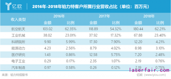 從鉑力特的營收所屬行業(yè)占比來看,2018年,航空航天領域占62.21%。鉑力特的3D打印零件支持了多項國家重點型號工程,產(chǎn)品批量裝機應用,涉及C919等軍民用大飛機、先進戰(zhàn)機、無人機、高推比航空發(fā)動機、新型導彈、空間站和衛(wèi)星等。在航空航天領域的市場優(yōu)勢,成為驅(qū)動鉑力特未來增長的重要動力。