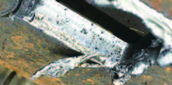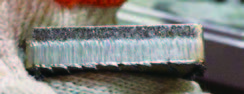 (3)板材斷面上層條紋良好,但底部掛渣且影響斷面效果