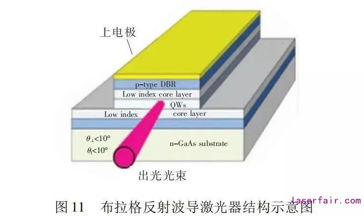 其他用于激光器單管的側向模式限制的方法還有傾斜光柵分布反饋激光器以及平板耦合波導半導體激光器等。