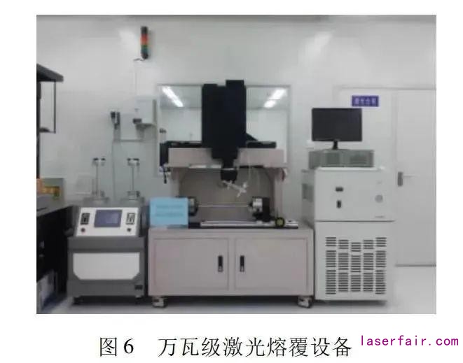 激光迭陣是采用微通道熱沉封裝去離子水冷卻的半導體激光線陣在快軸方向物理位置堆疊而成。由于其優(yōu)異的散熱特性,單層迭陣可工作在100 ~ 300 W,具有易實現(xiàn)高功率輸出和結構緊湊等優(yōu)點,是目前半導體激光器實現(xiàn)數(shù)千瓦甚至上萬瓦激光功率輸出最主要的合束形式。激光迭陣通常采用厘米線陣,因此需要進行光束整形后再激光合束。我們采用多組激光迭陣,研制出 6 kW球閥表面強化光源及萬瓦級激光熔覆光源,如圖6 所示。