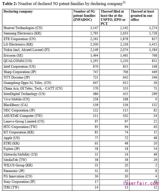 日前,德國的專利數(shù)據(jù)公司IPlytics發(fā)布了一份關(guān)于“5G標(biāo)準(zhǔn)專利聲明的實(shí)情調(diào)查”報(bào)告,截止2020年1月1日,全球共有21571個5G標(biāo)準(zhǔn)專利項(xiàng)聲明,其中華為擁有3147項(xiàng)排名第一, 其后分別是三星(2795)、中興(2561)、LG電子(2300)、諾基亞(2149)和愛立信(1494)。