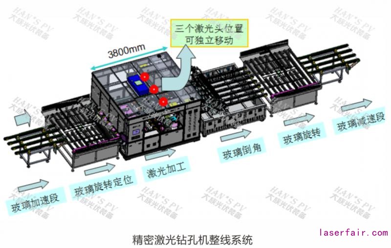 通過(guò)以上機(jī)械法和激光法的多方面對(duì)比,顯然激光加工技術(shù)是雙玻組件背板玻璃鉆孔的主要發(fā)展趨勢(shì)。大族光伏裝備專(zhuān)注于光伏行業(yè)的激光精密加工技術(shù)開(kāi)發(fā)及研究,針對(duì)光伏玻璃精密激光鉆孔技術(shù)研發(fā)出整線(xiàn)系統(tǒng)。
