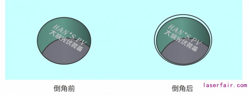 激光鉆孔法精度高、污染低,可以提高產(chǎn)品良率。激光鉆孔完成后,進(jìn)入倒角程序,倒角機(jī)對(duì)激光切割后的玻璃圓孔進(jìn)行倒角加工。倒角機(jī)采用CCD系統(tǒng)進(jìn)行精度為±0.01mm的定位,利用定制集成系統(tǒng)補(bǔ)圓弧倒角,可實(shí)現(xiàn)玻璃上下表面同時(shí)作業(yè);全幅面內(nèi)任意孔均可倒角,倒角效率高達(dá)0.2s/孔,倒角尺寸C為 0.2-0.5mm;設(shè)備的運(yùn)行成本低,穩(wěn)定性可靠。