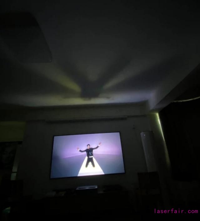 沒(méi)辦法,怪也只能怪我購(gòu)買之前沒(méi)有仔細(xì)做功課,關(guān)燈就關(guān)燈吧,為了畫面我忍了。可當(dāng)我把家里所有燈關(guān)掉并且拉上窗簾之后,更詭異的一幕發(fā)生了——雖然屏幕畫面勉強(qiáng)看清了,但在激光電視主機(jī)盒上方的天花板上卻出現(xiàn)了很多影影綽綽、雜亂無(wú)章的鬼影。