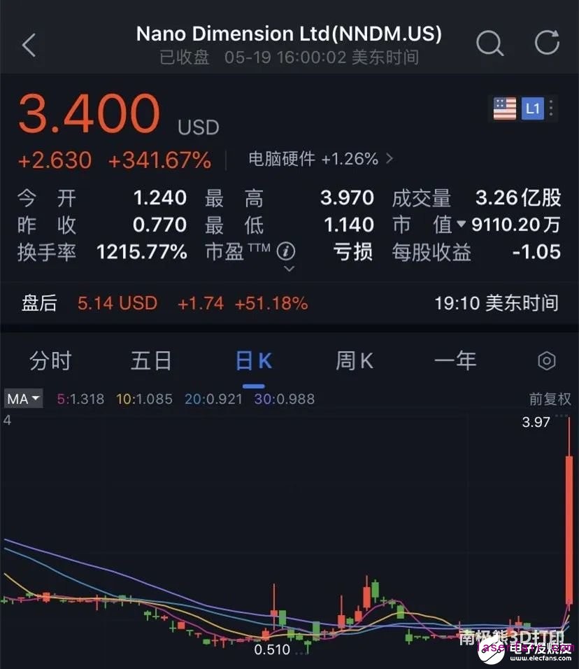 △正是這個突破性的技術進展,2020年5月19日Nano Dimension Ltd. (納斯達克,TASE:NNDM)股價暴漲341%