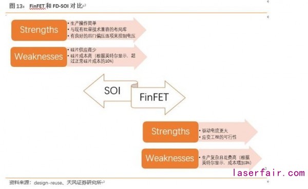 兩種技術各有特點,未來在 40/28 納米,14/10 納米的 FD-SOI 和 FinFET 技術會共存一段相當長時間。最終發(fā)展到 7 納米及以下時,SOI 也將從 2D 發(fā)展到 3D,即發(fā)展為 SOI FinFET 工藝。這表明 SOI 與 FinFET 技術可能殊途同歸。