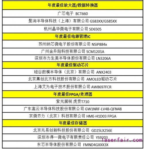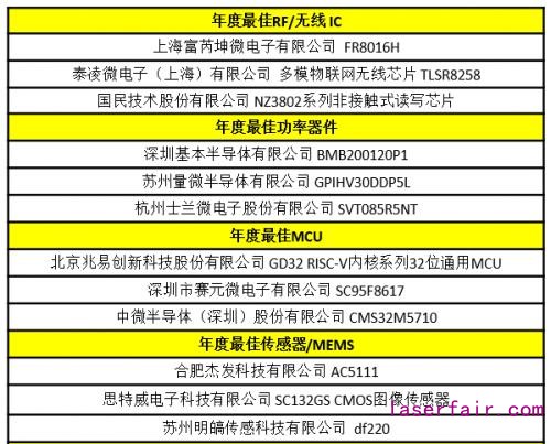 “2020年度中國(guó) IC 設(shè)計(jì)成就獎(jiǎng)”的獲獎(jiǎng)?wù)呔蓮氖码娮庸こ淘O(shè)計(jì)的用戶和讀者投票產(chǎn)生,獲獎(jiǎng)名單如下 (獎(jiǎng)項(xiàng)及得獎(jiǎng)?wù)吲琶环窒群?: