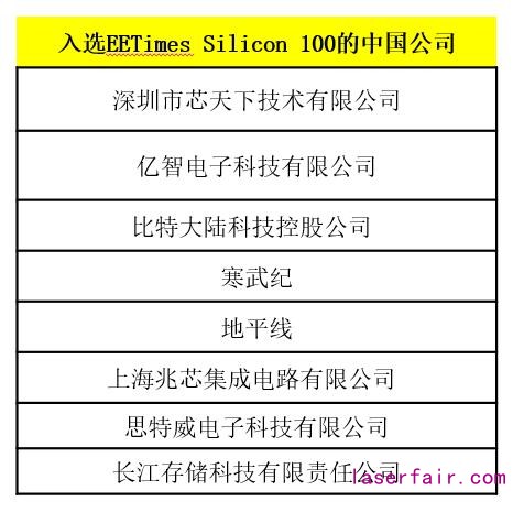 此外,本屆頒獎(jiǎng)典禮還為入選EETimes Silicon 100榜單的中國(guó)IC設(shè)計(jì)公司頒發(fā)了獎(jiǎng)杯。