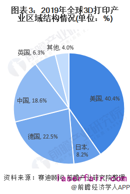 2019年美國產(chǎn)業(yè)規(guī)模占全球比重40.4%,德國僅次于美國,中國位居第三。作為3D打印起步較晚的中國,近幾年,抓緊自主創(chuàng)新和研發(fā),雖然和國外的技術還有一定差距,但也一步步朝著精細化和專業(yè)發(fā)展。當然,國內(nèi)巨大的市場潛能,也吸引了不少國外3D打印行業(yè)巨頭的目光和投資,進一步推動了中國3D打印產(chǎn)業(yè)的發(fā)展。