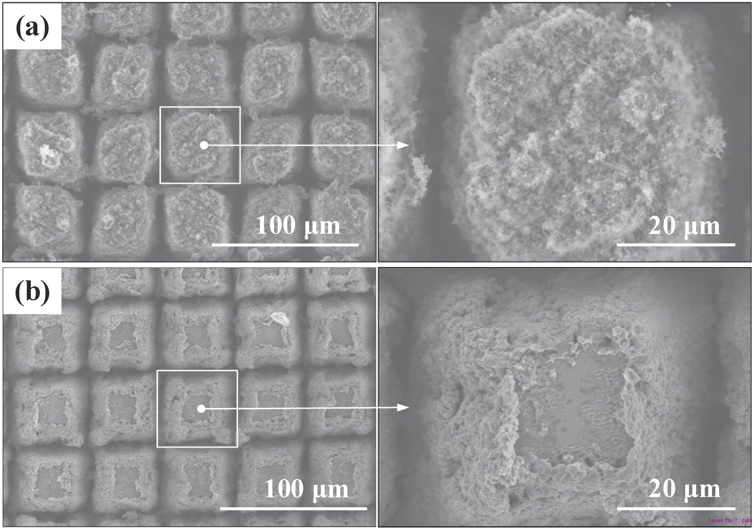 a)激光輻照后的形貌以及Si表面和b)激光織構(gòu)的表面采用HF蝕刻后的形貌