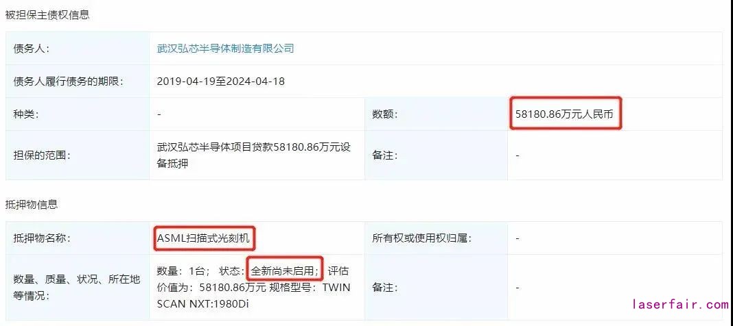 但值得注意的是,今年1月,弘芯剛剛進(jìn)場(chǎng)一個(gè)多月的大陸唯一一臺(tái)7nm光刻機(jī)轉(zhuǎn)手就被抵押,根據(jù)企查查上的動(dòng)產(chǎn)抵押顯示,金額高達(dá)5.8億元,而且是全新尚未使用。